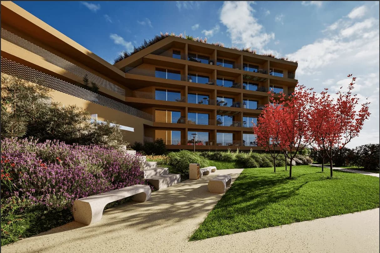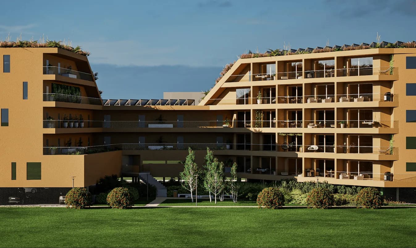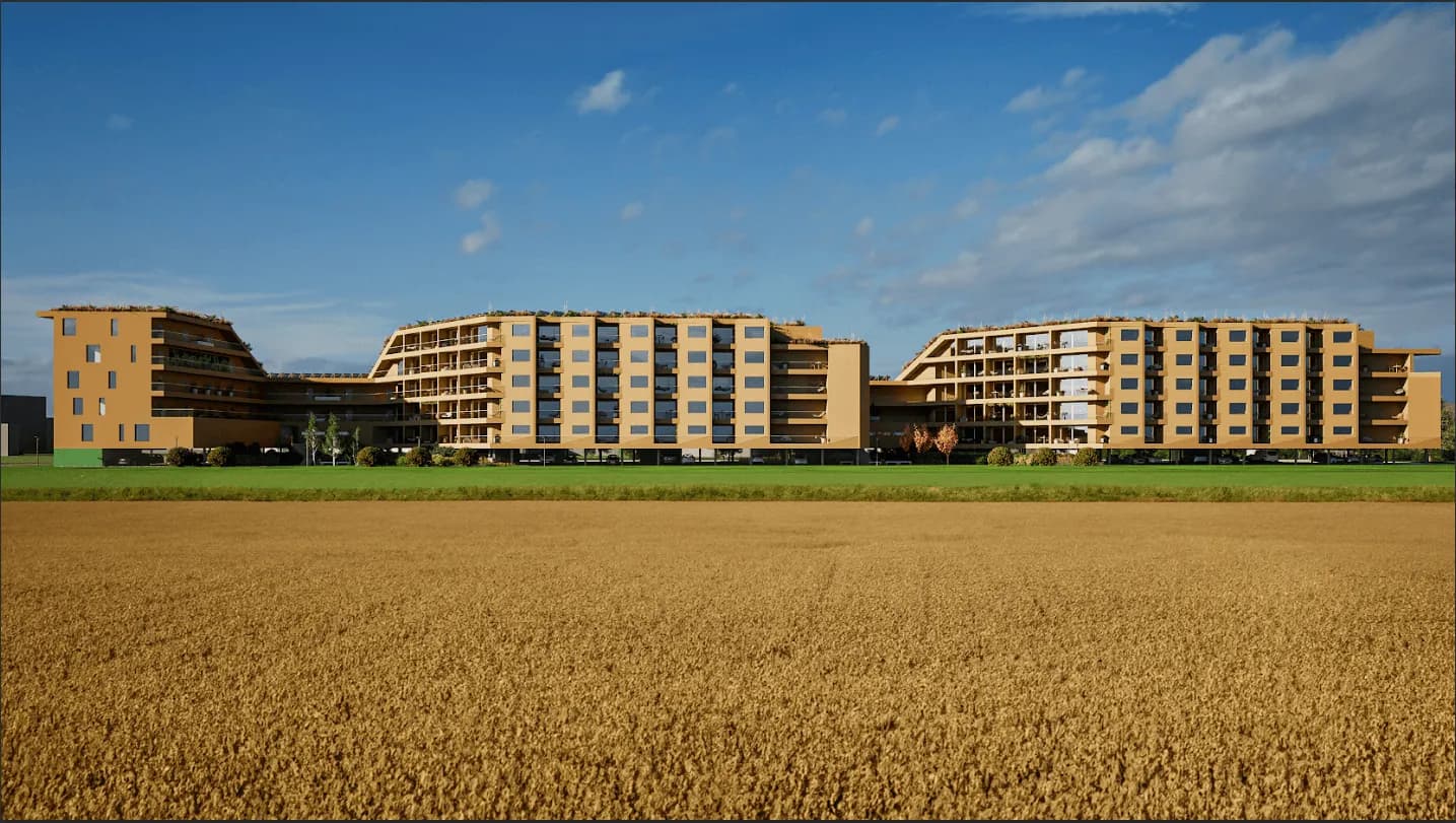 Celkem bude v rezidenci Meandr 200 bytů o velikosti 1+kk, 2+kk, 3+kk, 4+kk a 200 parkovacích stání přímo pod budovami.